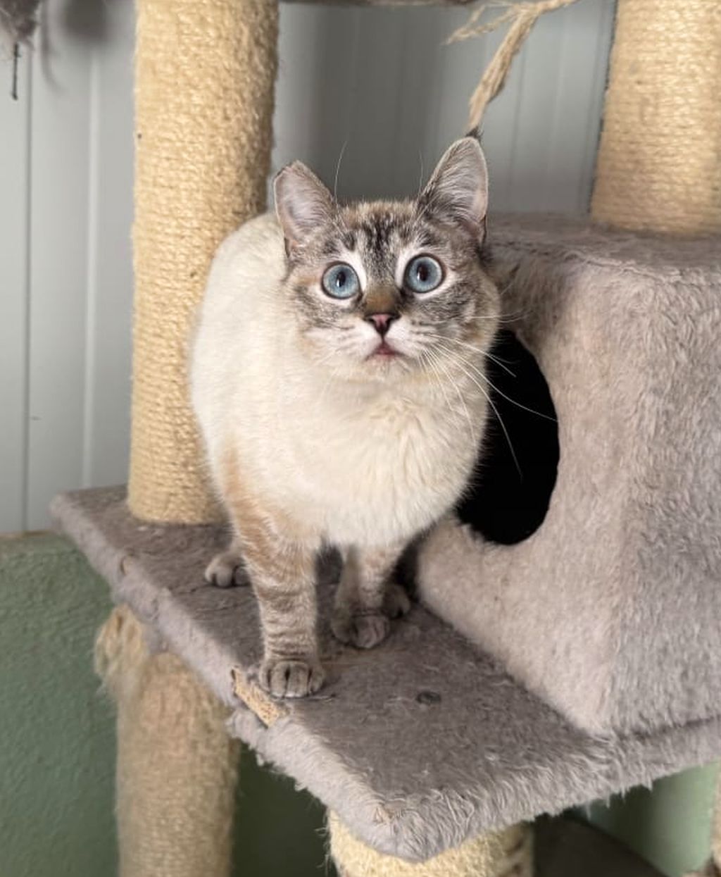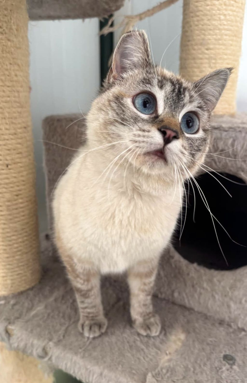 Maria lebt in einem kleinen Tierheim in Andalusien, Abyda. Die hübsche Siam-Mix Katze ist im August 2025 geboren. Maria ist besonders anhänglich, verkuschelt und leidet sehr im Tierheim. Sie lebt in einer größeren Katzengruppe und ist sozial mit mit den anderen Katzen. Natürlich ist sie entsprechend ihrem Alter noch sehr verspielt.